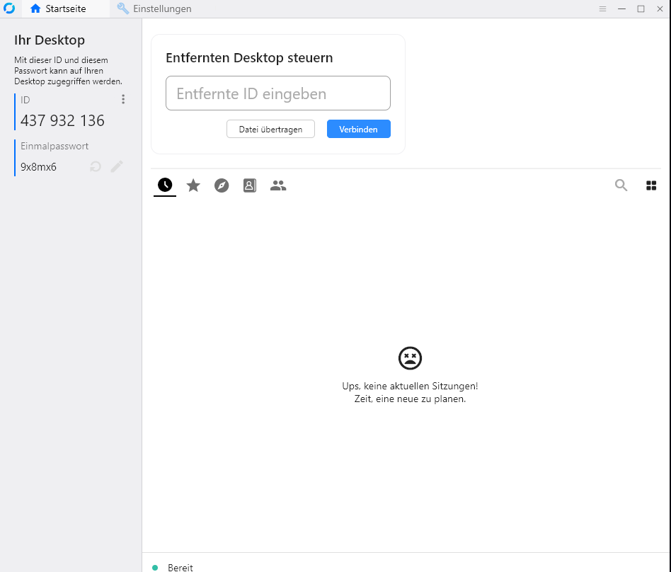Damit ich nun Zugriff auf deinen Rechner erhalte, benötige ich noch dein Einmal-Passwort, das du links im Fenster findest. Alternativ supporten wir dich mit einer manuellen Freigabe von dir. Dazu klickst du bei unserem Verbindungsaufbau zu deinem Rechner, dass du die remote Verbindung zulässt.