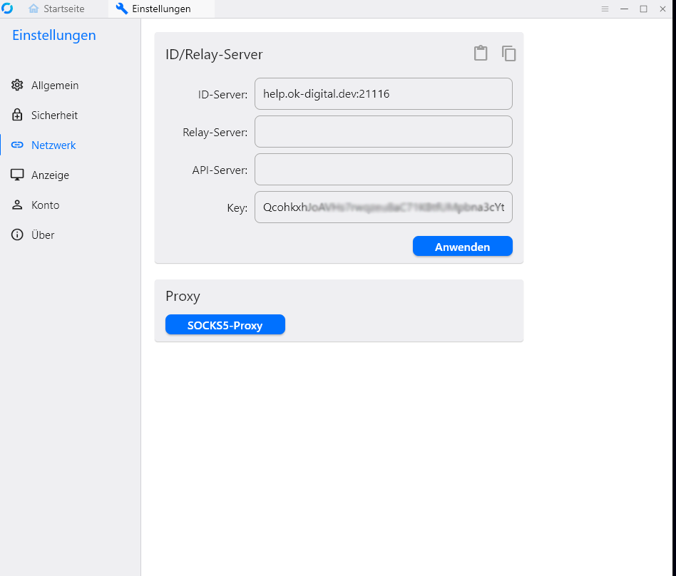 ID/Relay-Server erscheint, dort siehst du auf selber Höhe zwei Icons. Das erste Icon ist für den Import der Servereinstellungen.